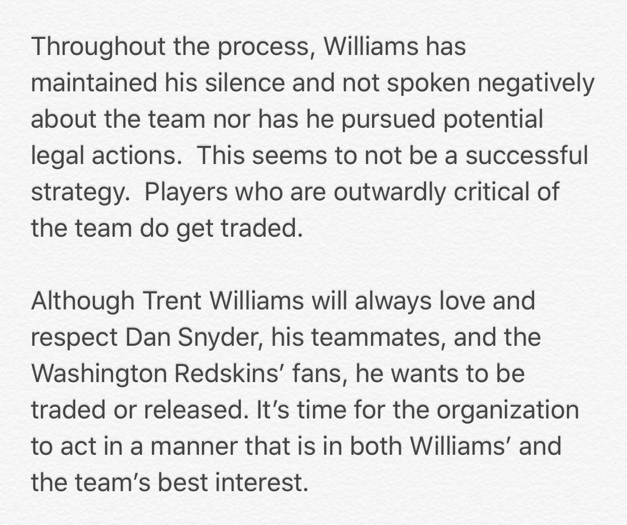 Re: Trent Williams ends season-long holdout, rejoins Redskins