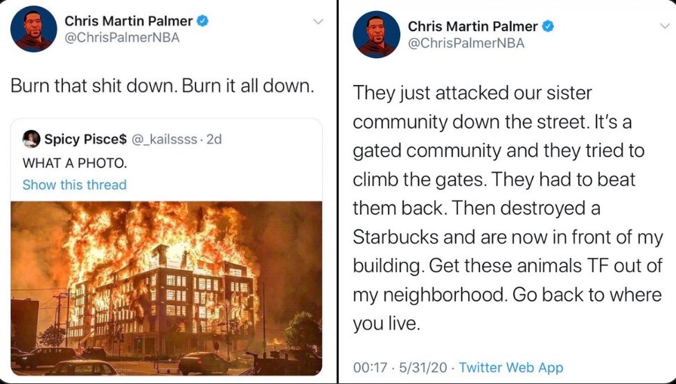 Typical average liberals: burn it down which is fine in minority communities, but in my gated community you will be attacked and told to go back where you live Just like Rob Reich and Steph Curry have done