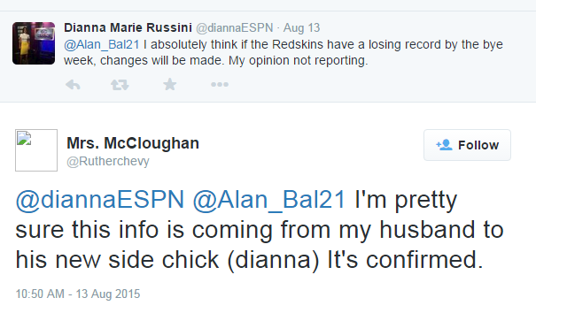 There was also this from Scot's wife back on 8/13 https://pbs.twimg.com/media/CN8OvCUUYAAIKe3.png:large She alleged Scot was having an affair with Russini. Holy crap what a sh** show this team is. First good thing they've done is hire this guy and now it is, literally, going to get f***'ed.
