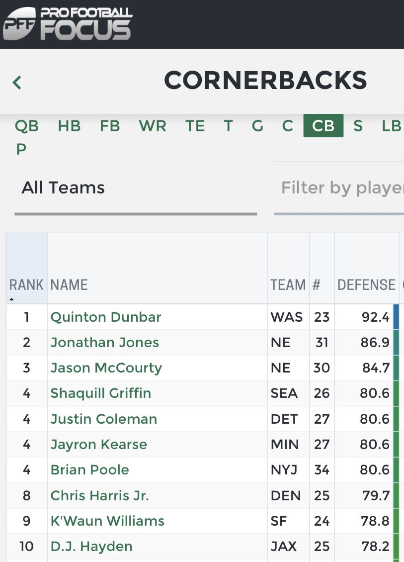 Q is the number 1 CB at PFF right now. He's been INSANE