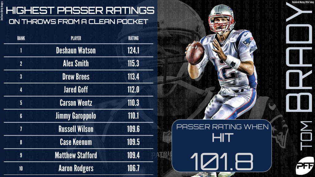 But the key to keep in mind is PFF still uses passer rating, instead of ESPN's proprietary QBR. QBR takes into account yards gained on the ground and whether they converted to first downs or not. These passer rating stats do not.