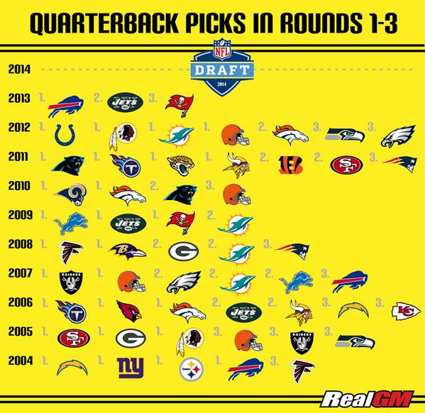 from that, 28 of the 32 teams have invested at least 1 top 3 round pick in a qb in the last 10 years. Teams that haven't:
