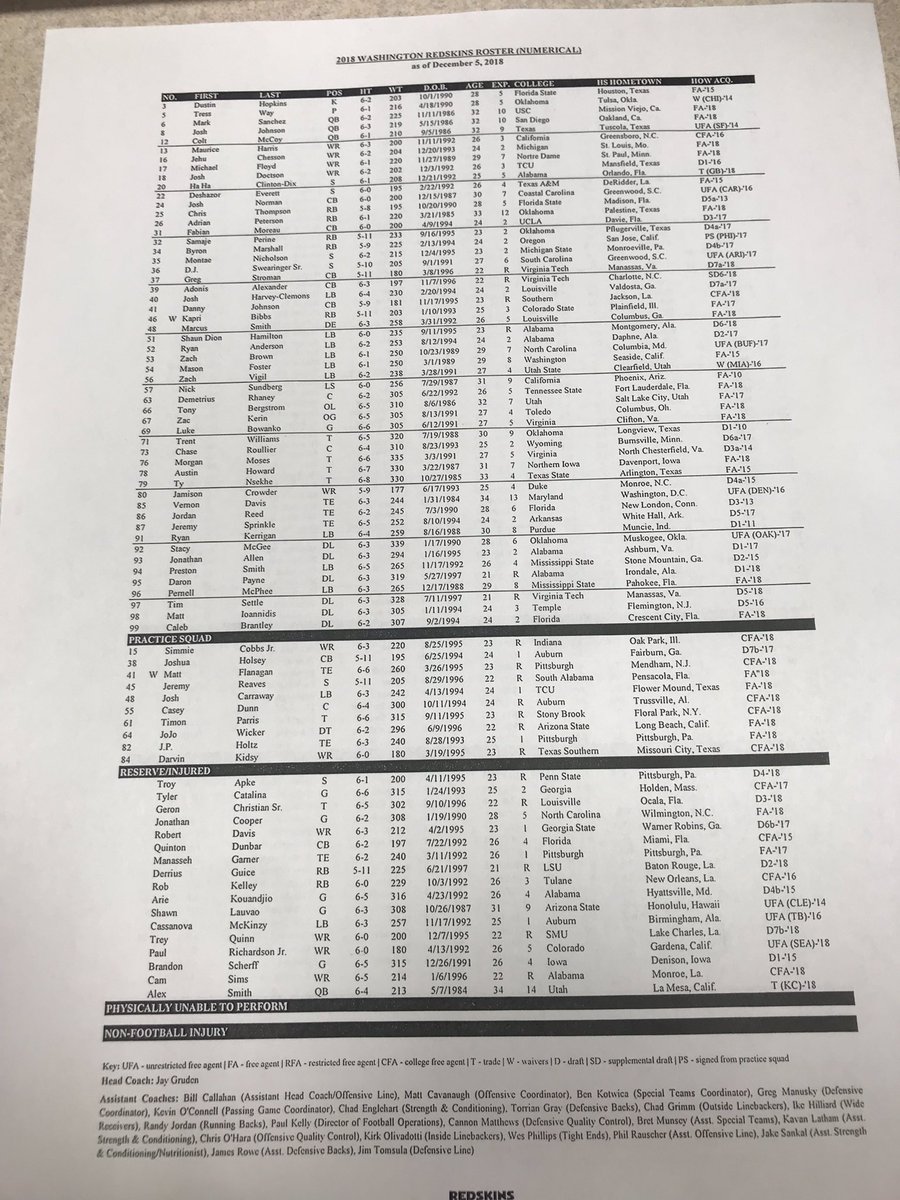 ![]() That's 17 players on IR, with 6 of them being starters (if you count Guice as a starter).