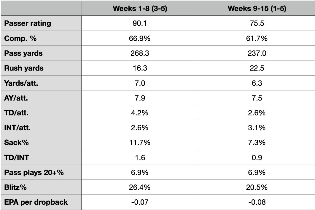 Howell doesn't get the ball downfield with any accuracy. Sure he has a good arm but can he see the whole field? His 2 longest receptions are to RBs on broken plays. 500+ pass attempts, Howell did not complete a 40+ yard reception to Terry or Jahan. If I'm game planning for Howell, Damn near all passes are under 20 yards. I'm going to make him beat me over the top. That's why Brissett made the long pass look easy. They didn't game plan for anything deep and left the corner without help. Sam needs to go out swinging against the Jets. Considering how well guys like Flacco and Mayfield are playing, Sam Howell is looking like a practice squad player right now. He needs to put up big plays to stay relevant. 5th round picks don't get to suck for this long. |