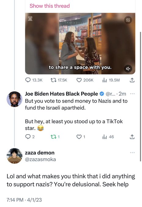 “YOOOOO!!! AOC has burned accounts. I responded to one of her posts reminding her that she sends money to Nazis, and some random account responded to me speaking in first person as if I attacked them. Then that same person DELETED the tweets 😭🤣” She tried to play it off and then that account was deleted. Hilarious