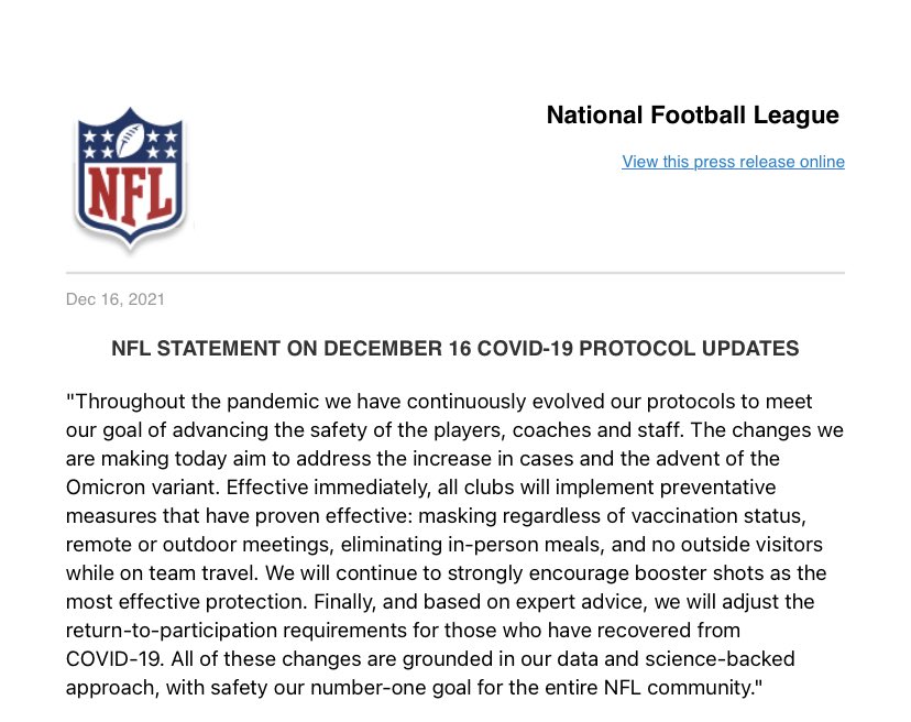 NFL returns to enhanced COVID rules, relaxes return-to-play requirements